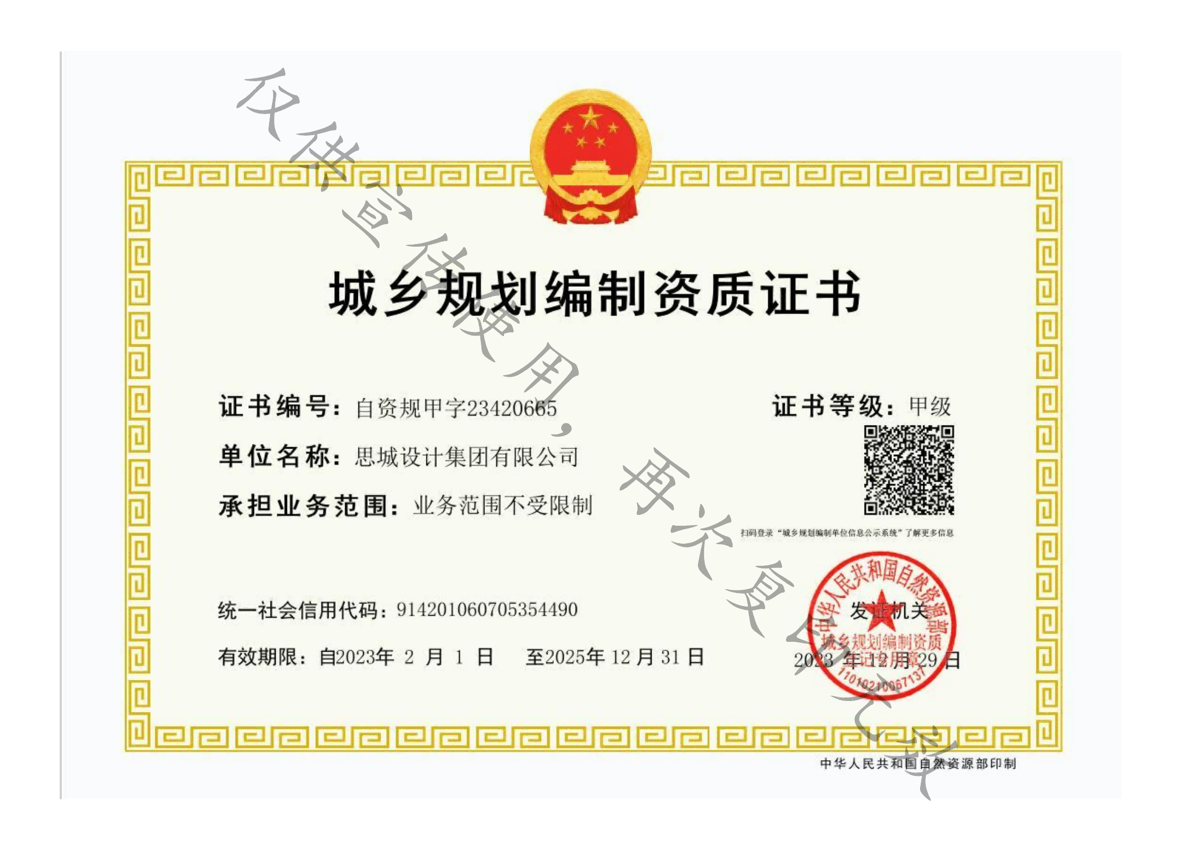 - 城鄉(xiāng)規(guī)劃編制資質(zhì)證書(shū)