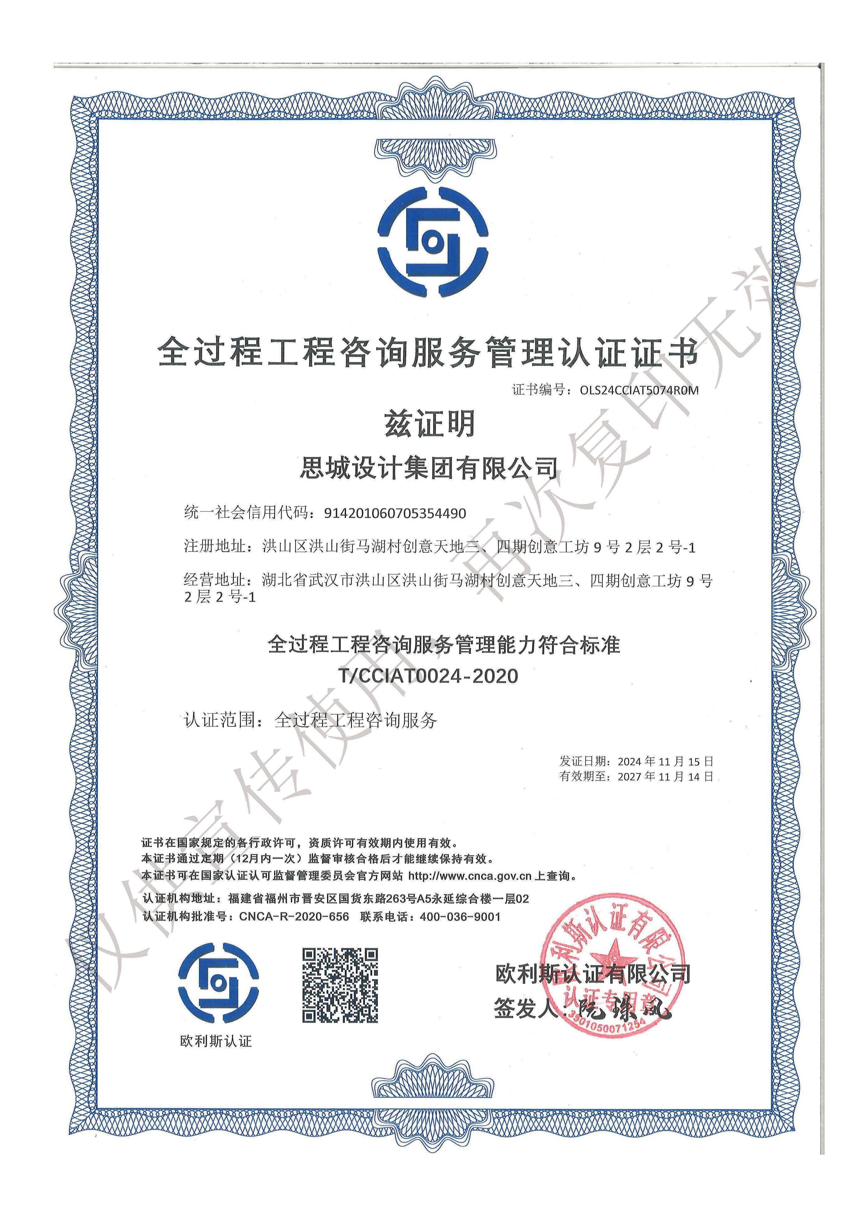 - 全過(guò)程工程管理服務(wù)認(rèn)證證書(shū)